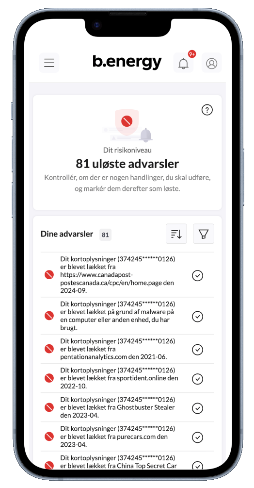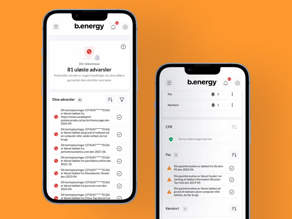 Hvis dine oplysninger dukker op i et datalæk, får du straks en tydelig advarsel. Appen viser dig, hvad der er fundet, hvor det stammer fra, og hvad det betyder for dig. Det gør det nemt at reagere i tide og forhindre misbrug.